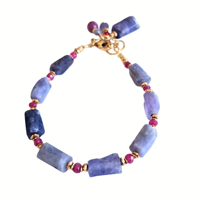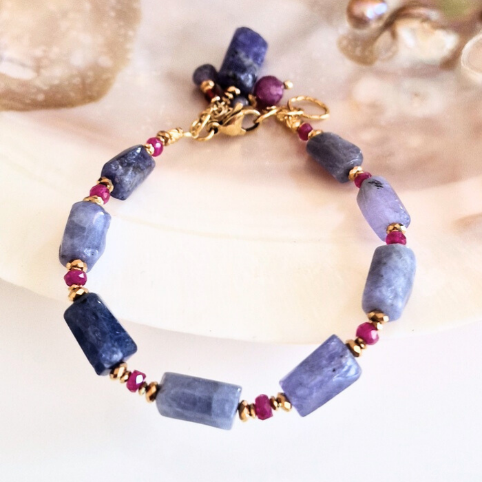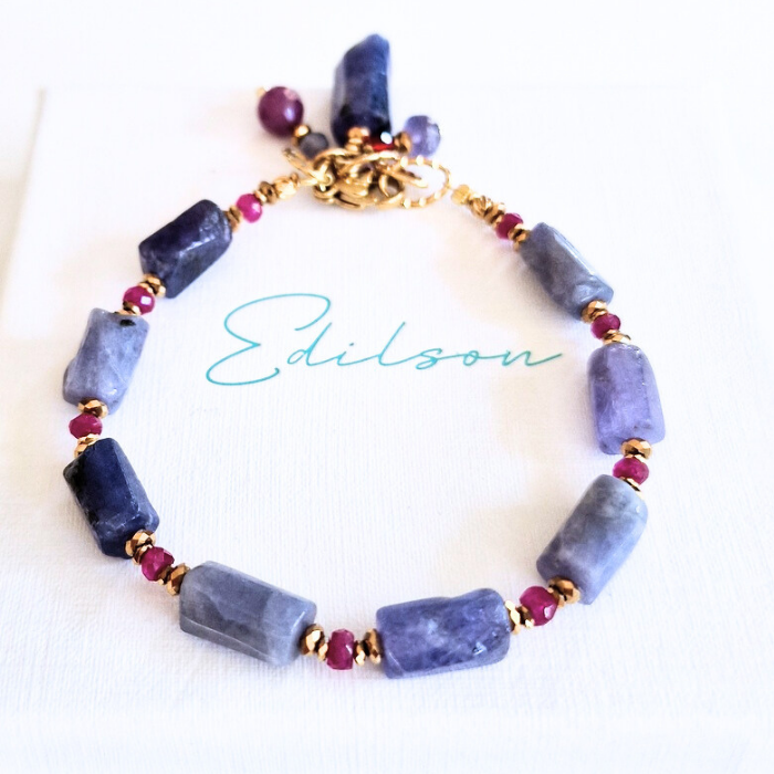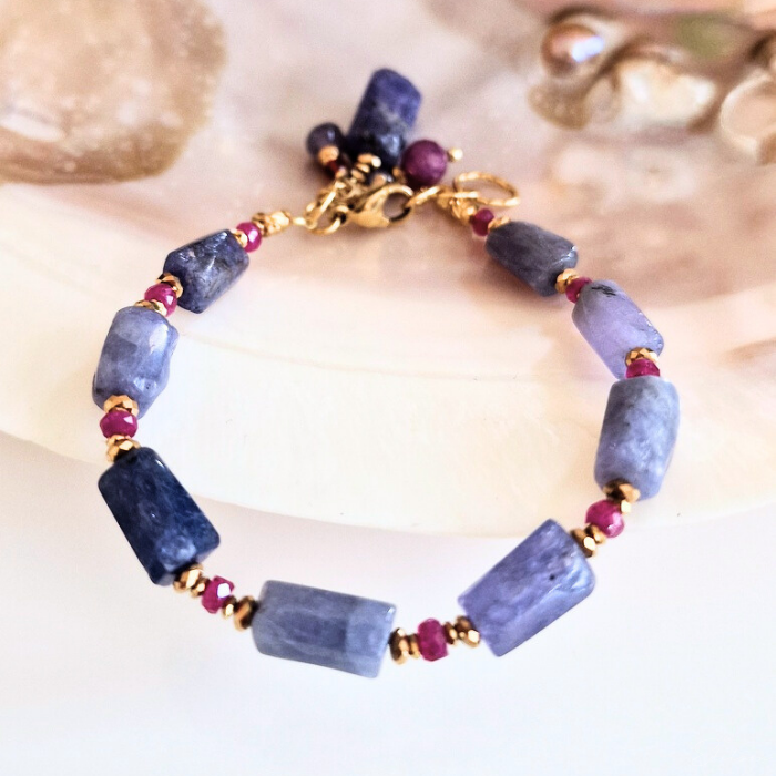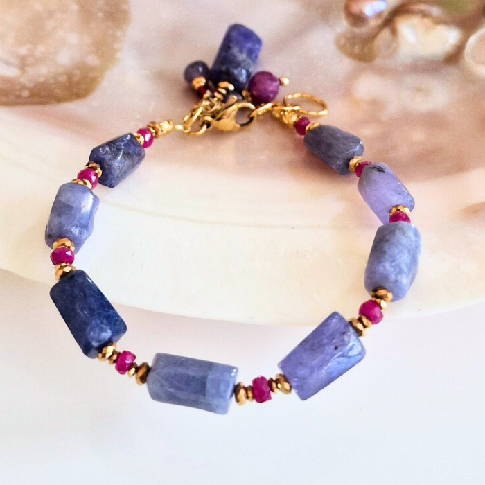 Bransoletka z tanzanitami i rubinami
