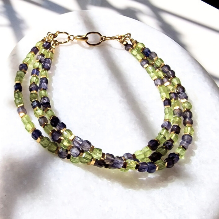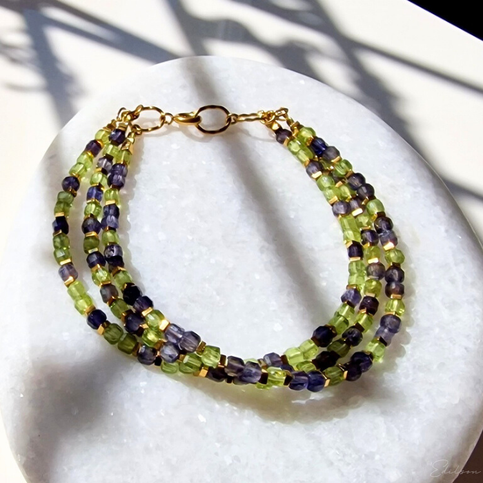 Bransoletka z iolitami i oliwinami
