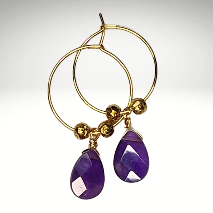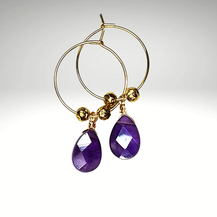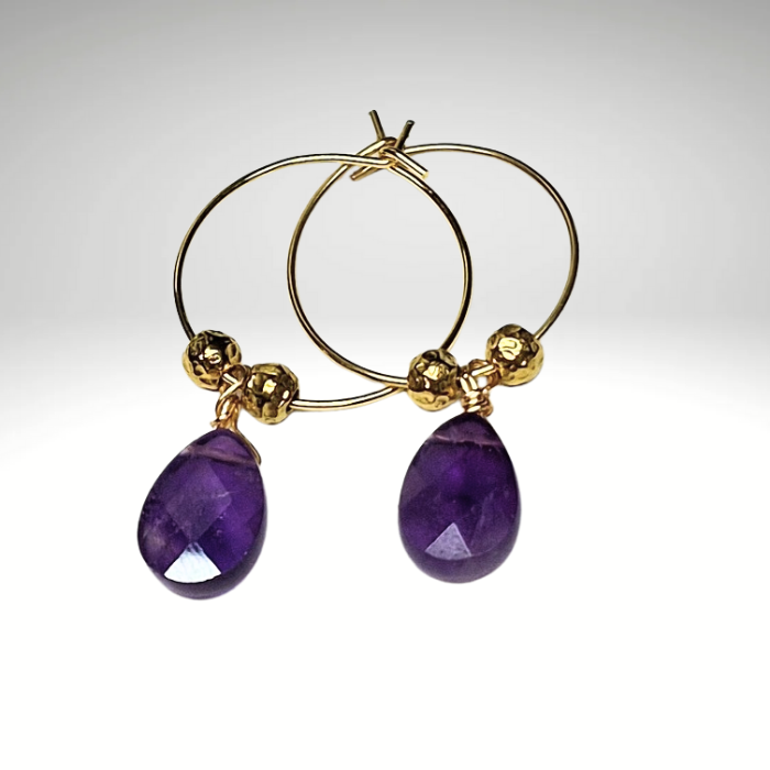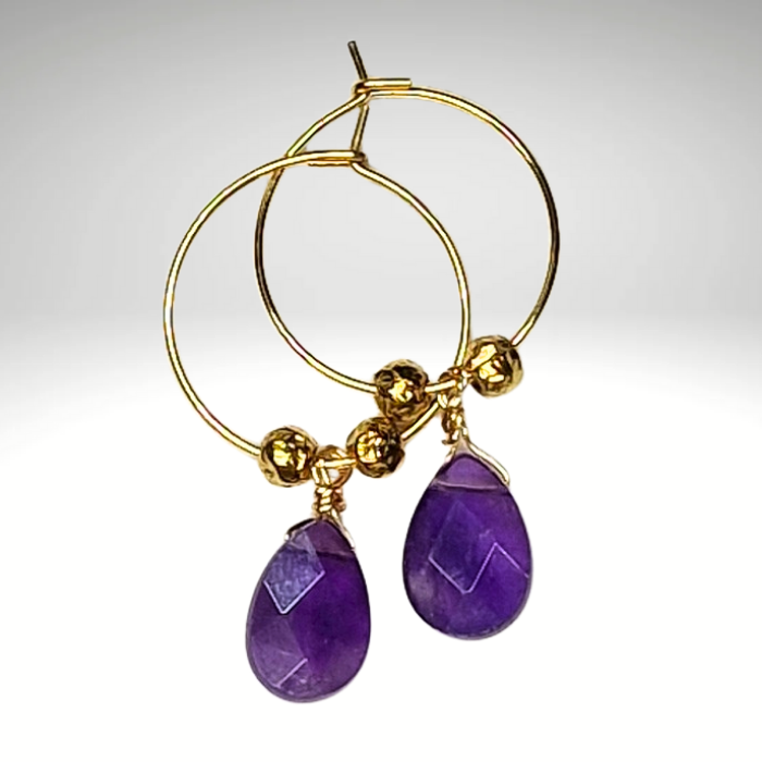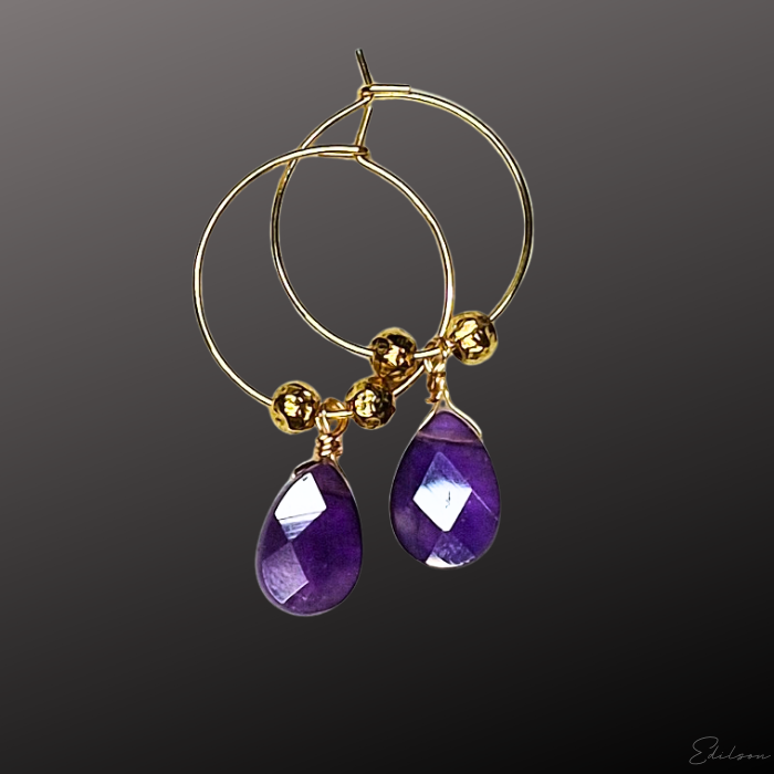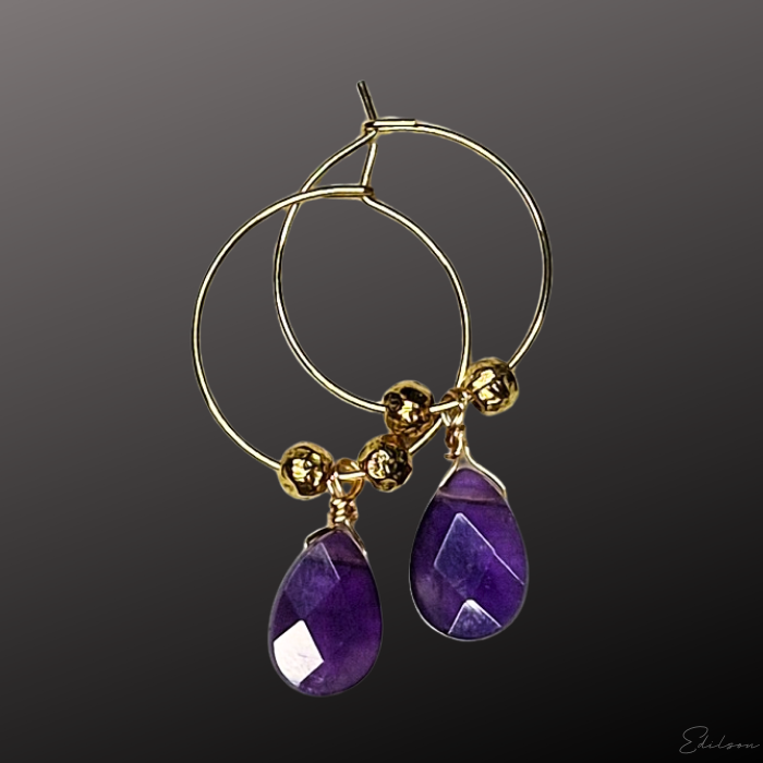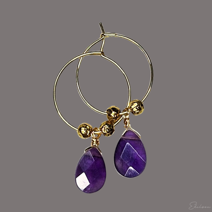 Niezwykle delikatne i subtelne kolczyki z kamieniami naturalnymi - ametystami, ładnie fasetowanymi w kształcie łezki