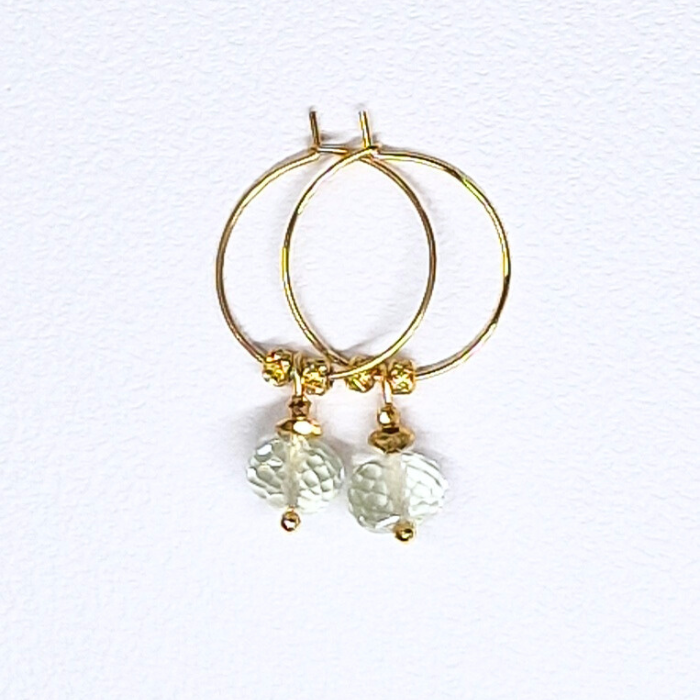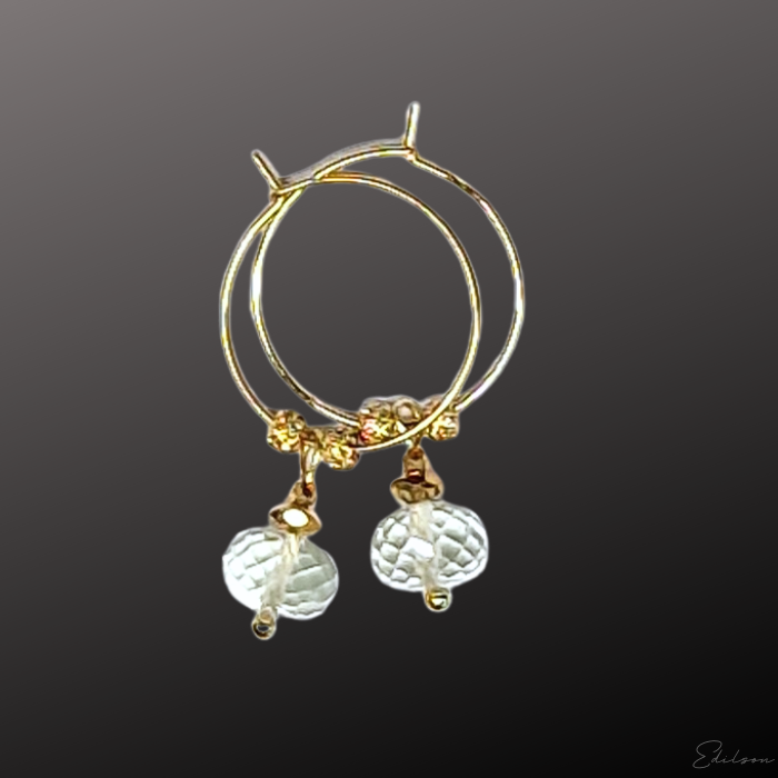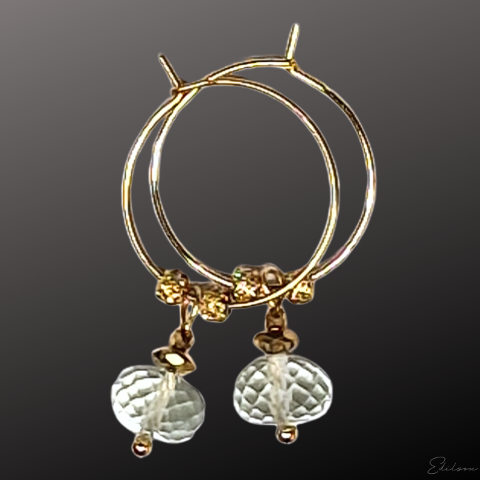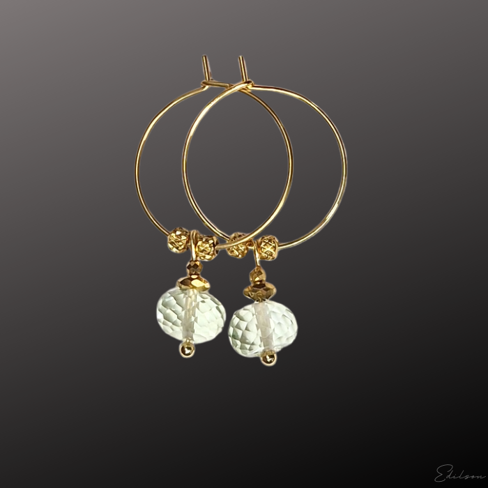 Niezwykle delikatne i subtelne kolczyki z kamieniami naturalnymi - zielonymi ametystami, przepięknie fasetowanymi, cudownej jakości.