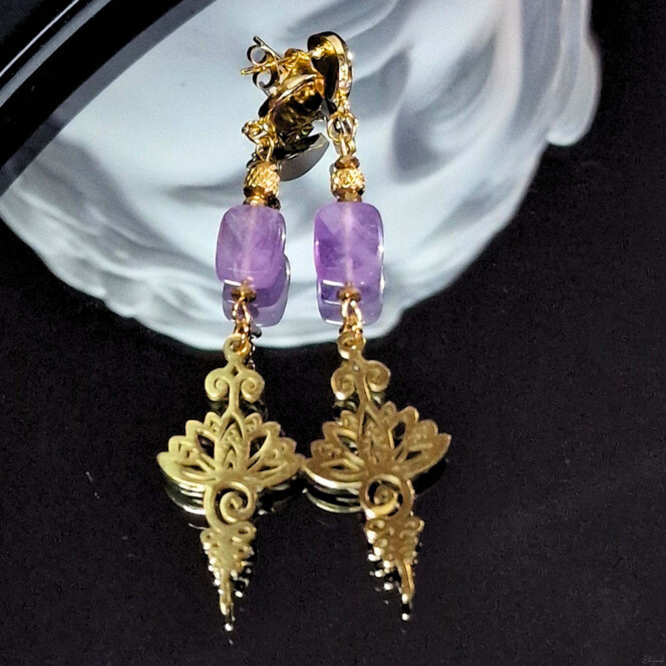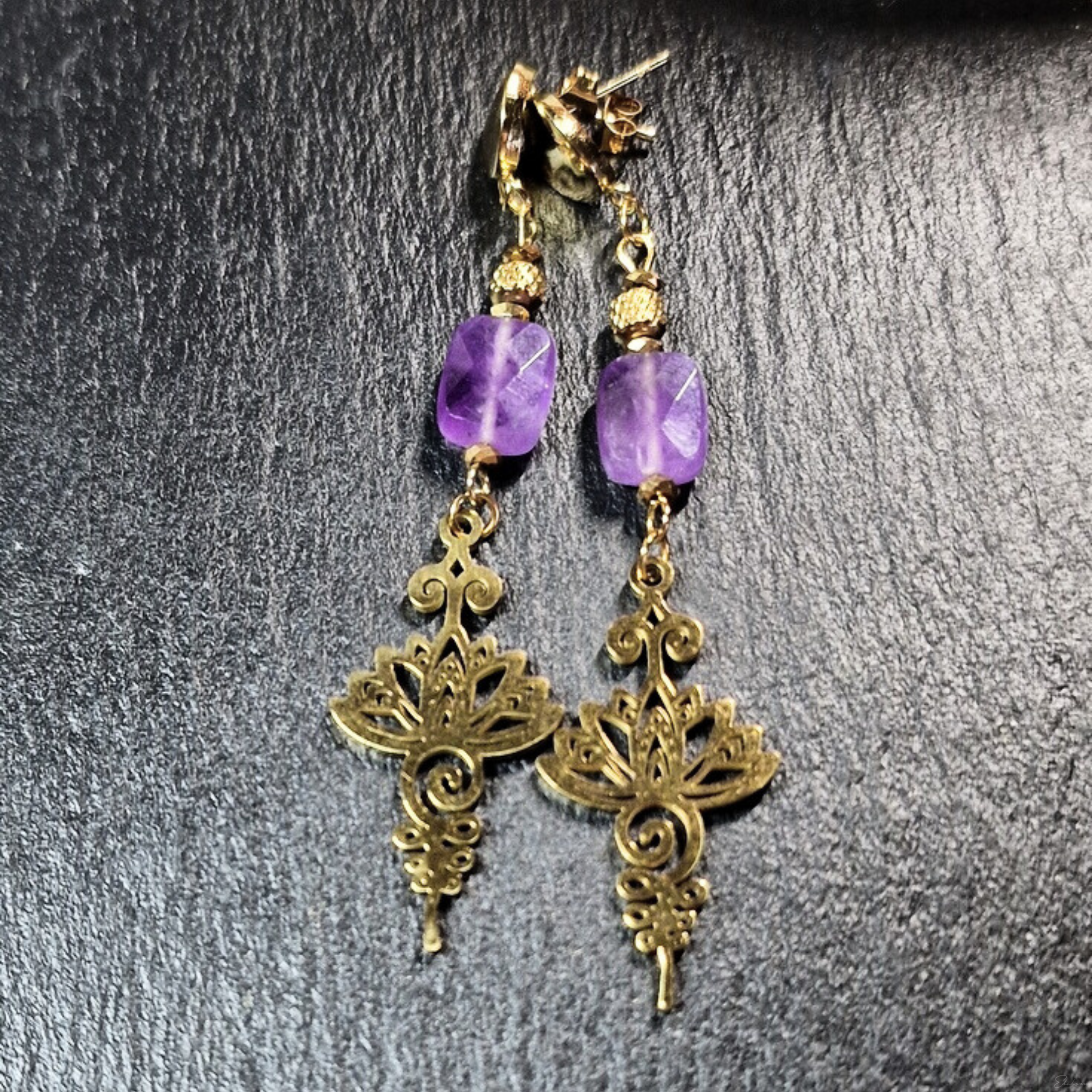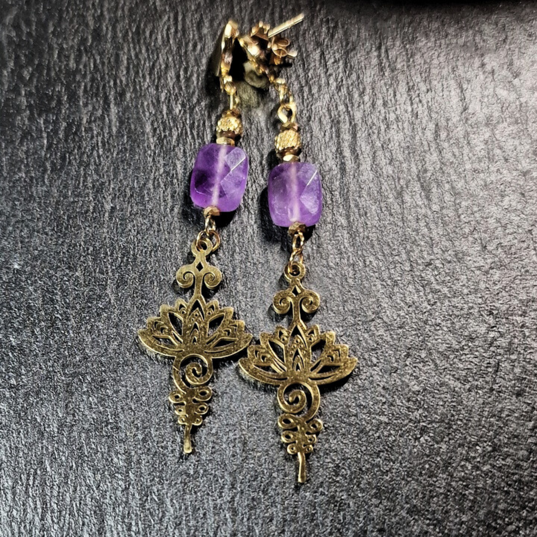 Ręcznie wykonane kolczyki z kamieniami naturalnymi - ametystami