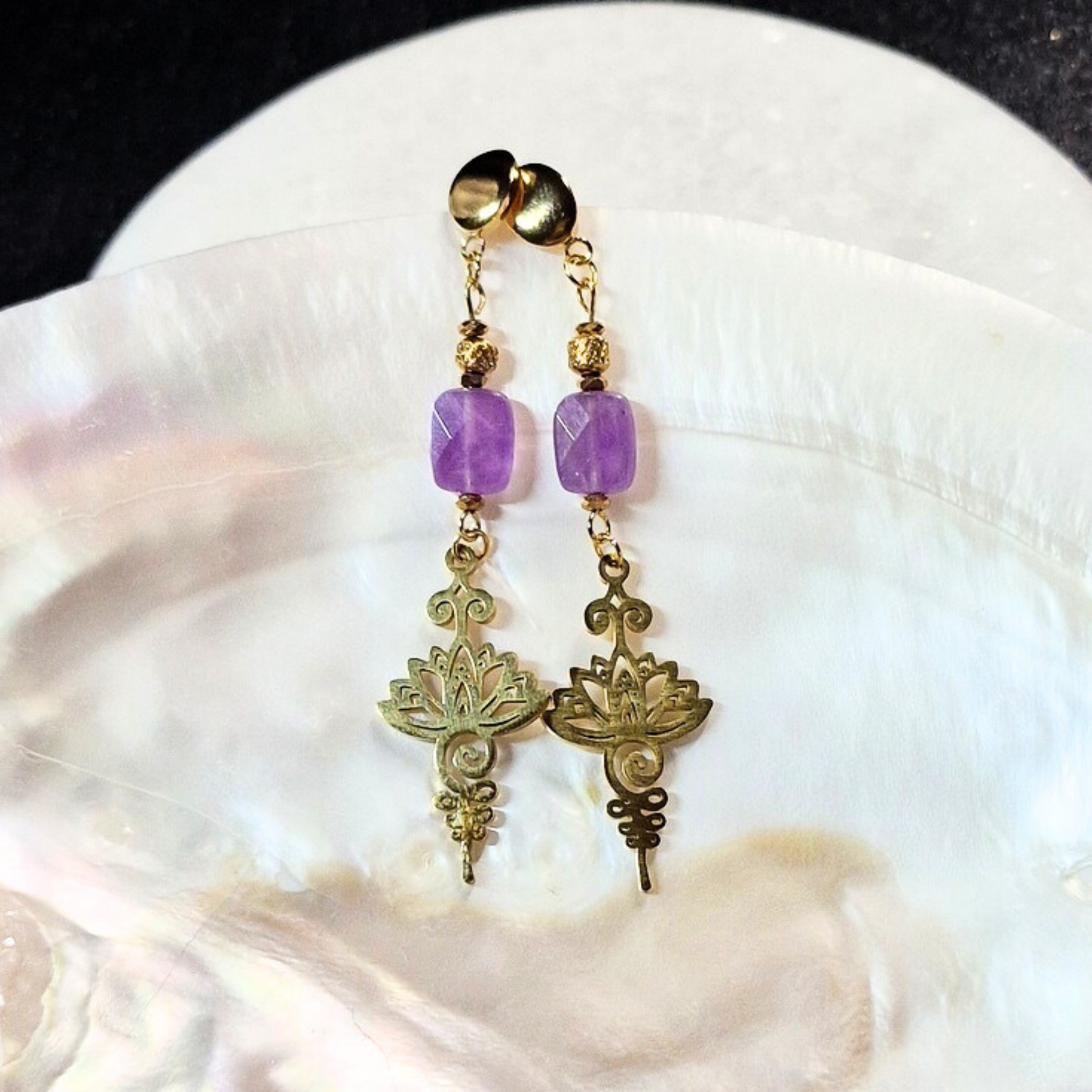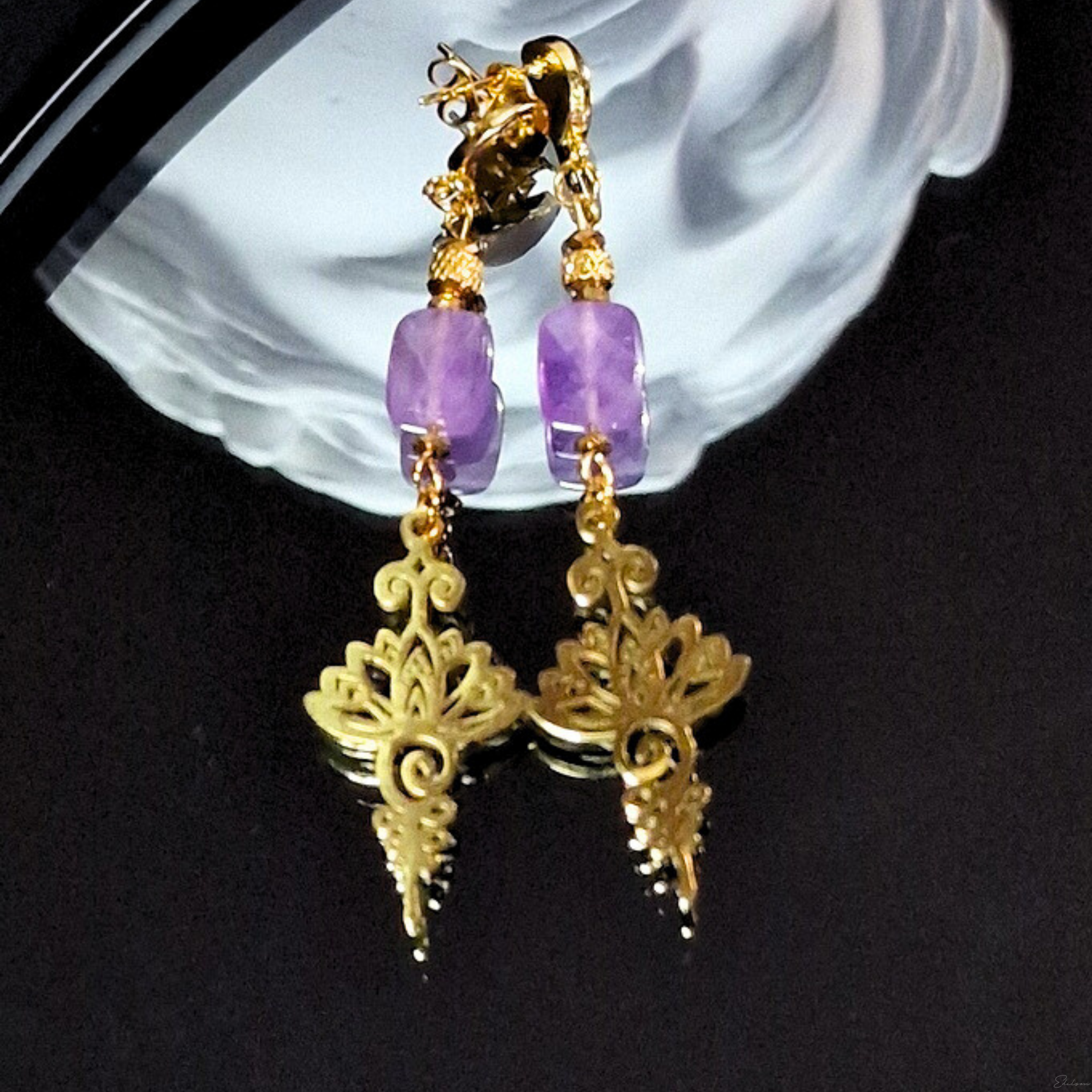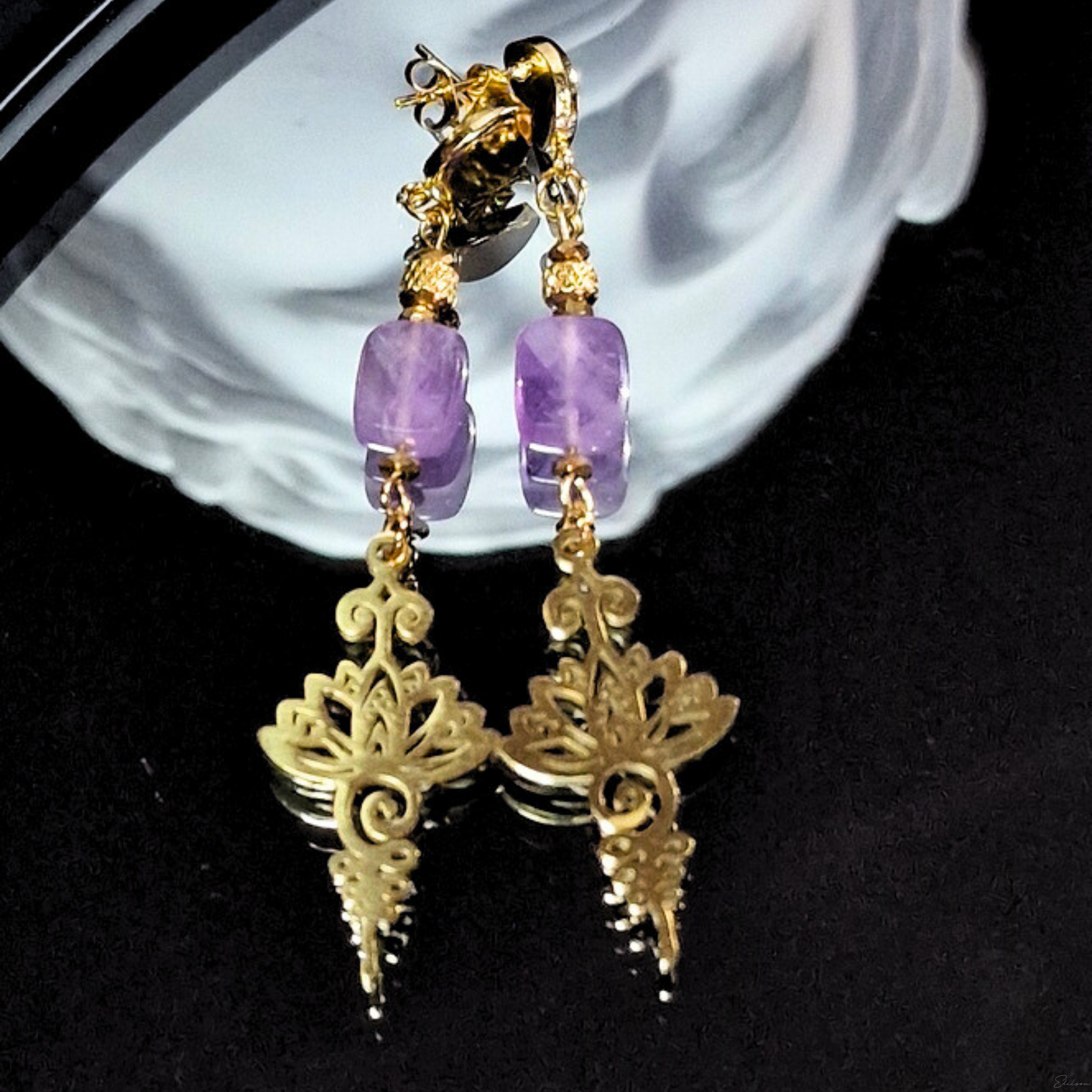 Ręcznie wykonane kolczyki z kamieniami naturalnymi - ametystami