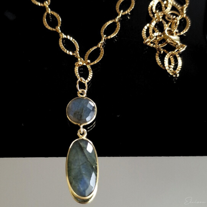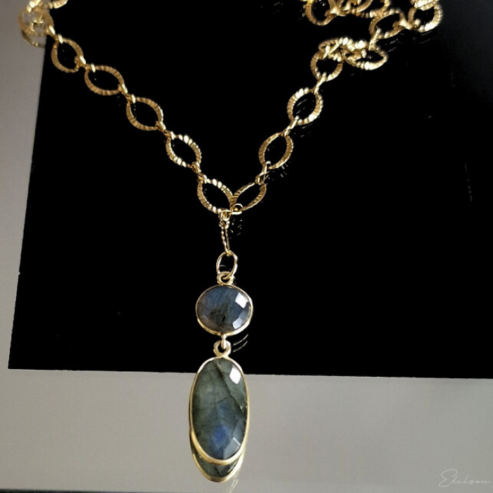 Ręcznie wykonany krótki naszyjnik - łańcuszek z labradorytem pięknie odbijającym światło na niebiesko.