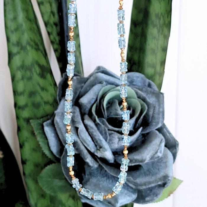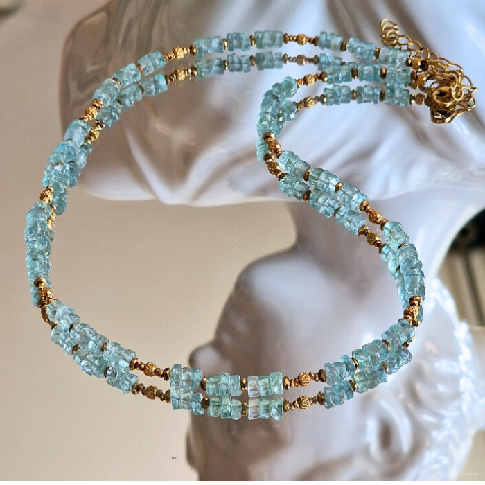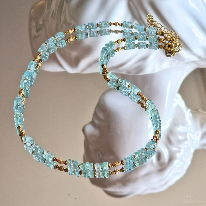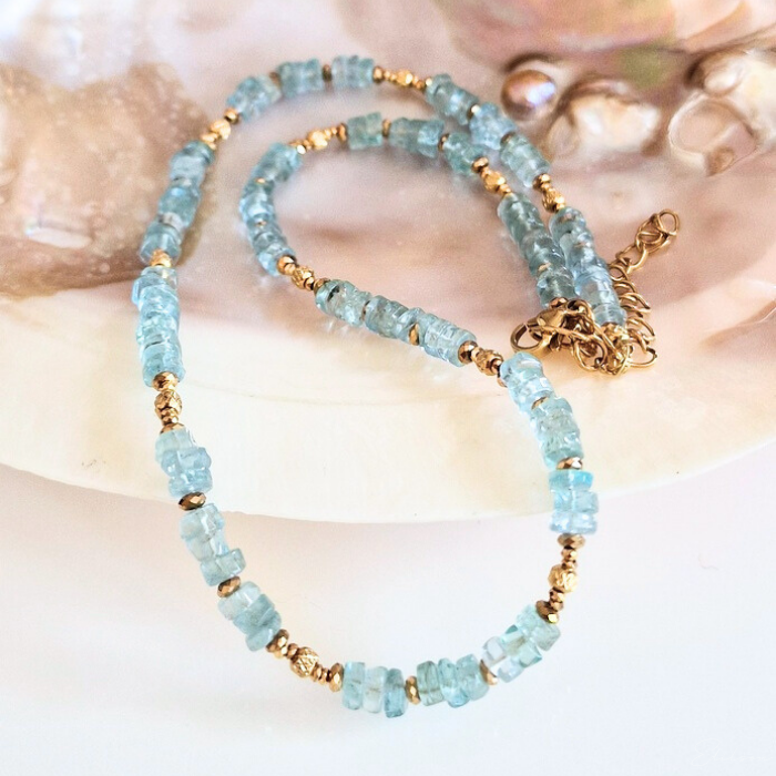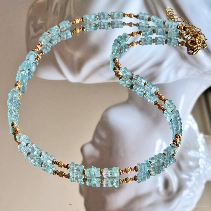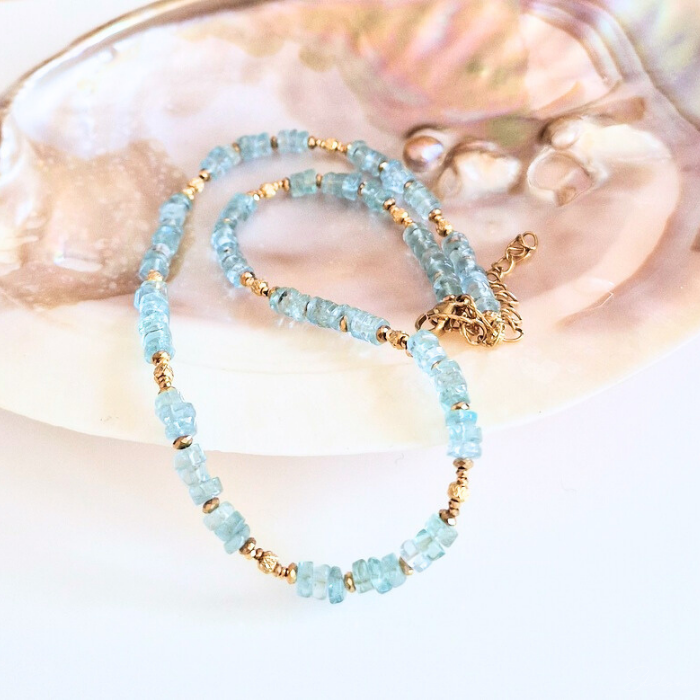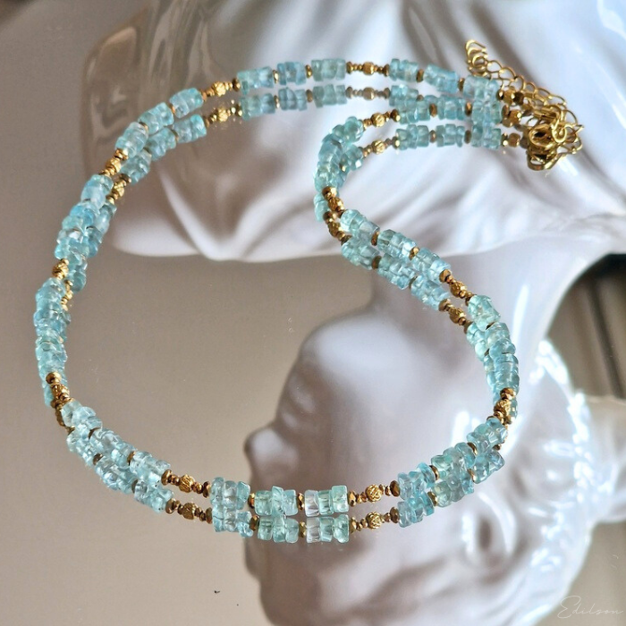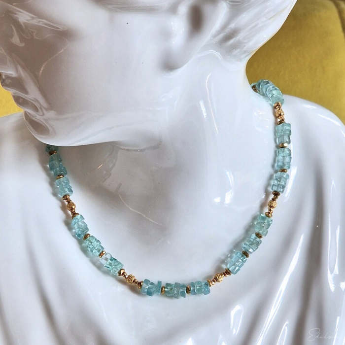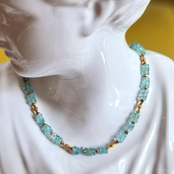 Ręcznie wykonany krótki naszyjnik z kamieni naturalnych - apatytów.