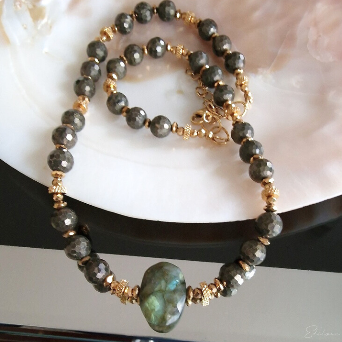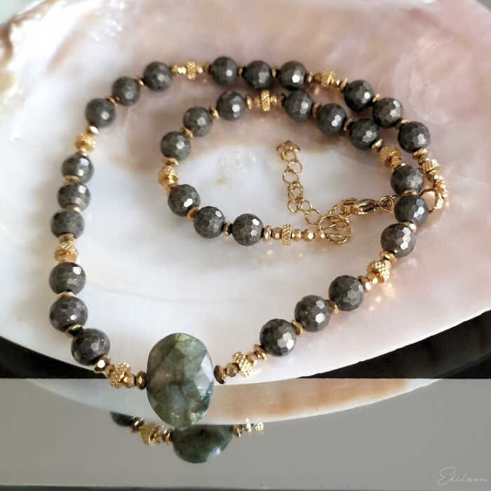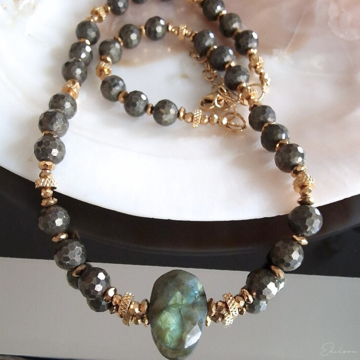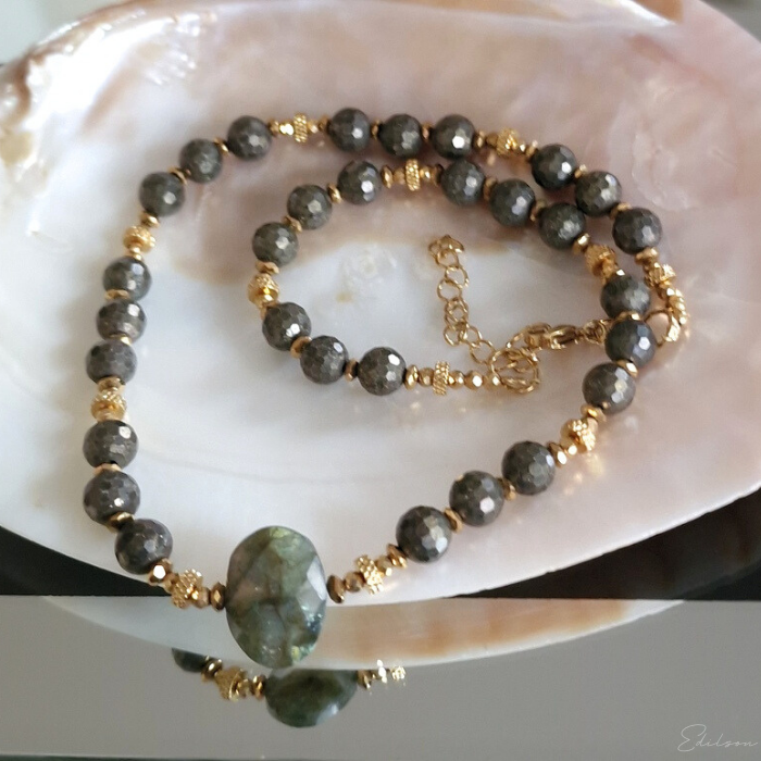 Naszyjnik z pirytami i labradorytem