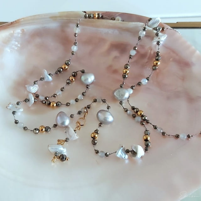 Naszyjnik z perłami i labradorytami