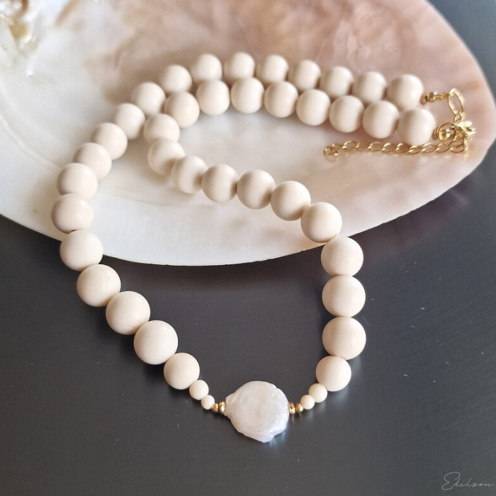 Naszyjnik z kamieni rzecznych to biżuteria dla pań ceniących ponadczasową elegancję i naturalne piękno.
