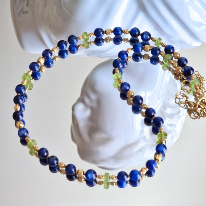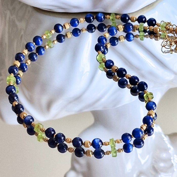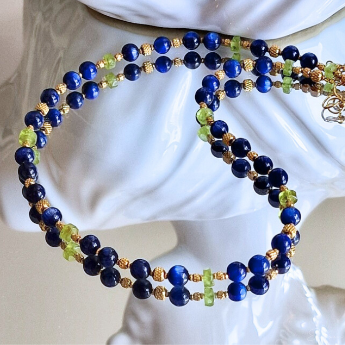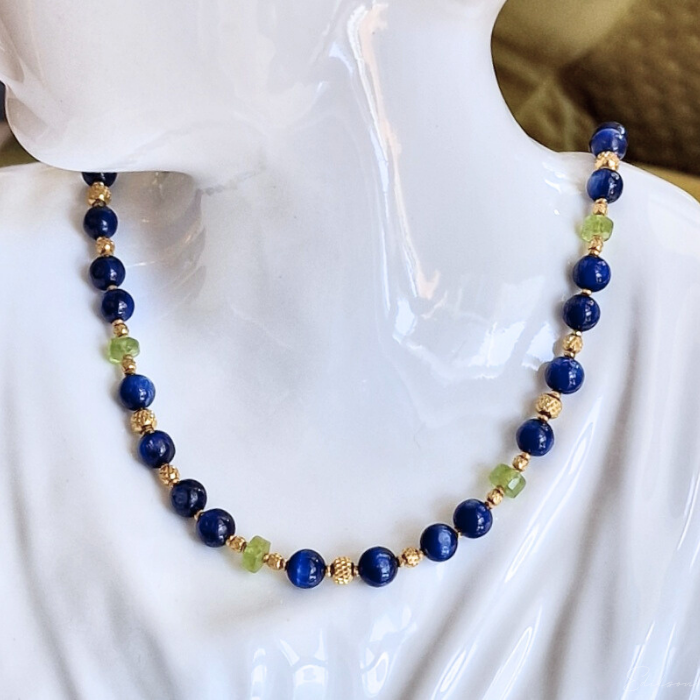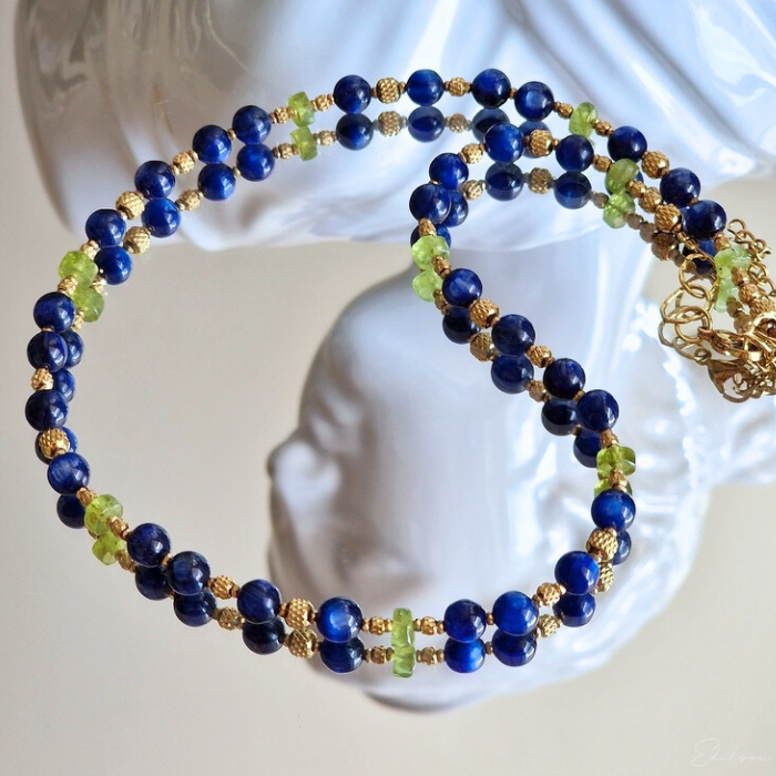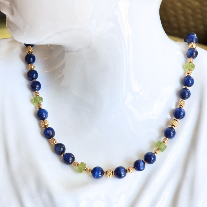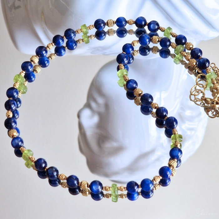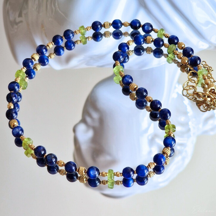 Krótki naszyjnik z kyanitami i oliwinami
